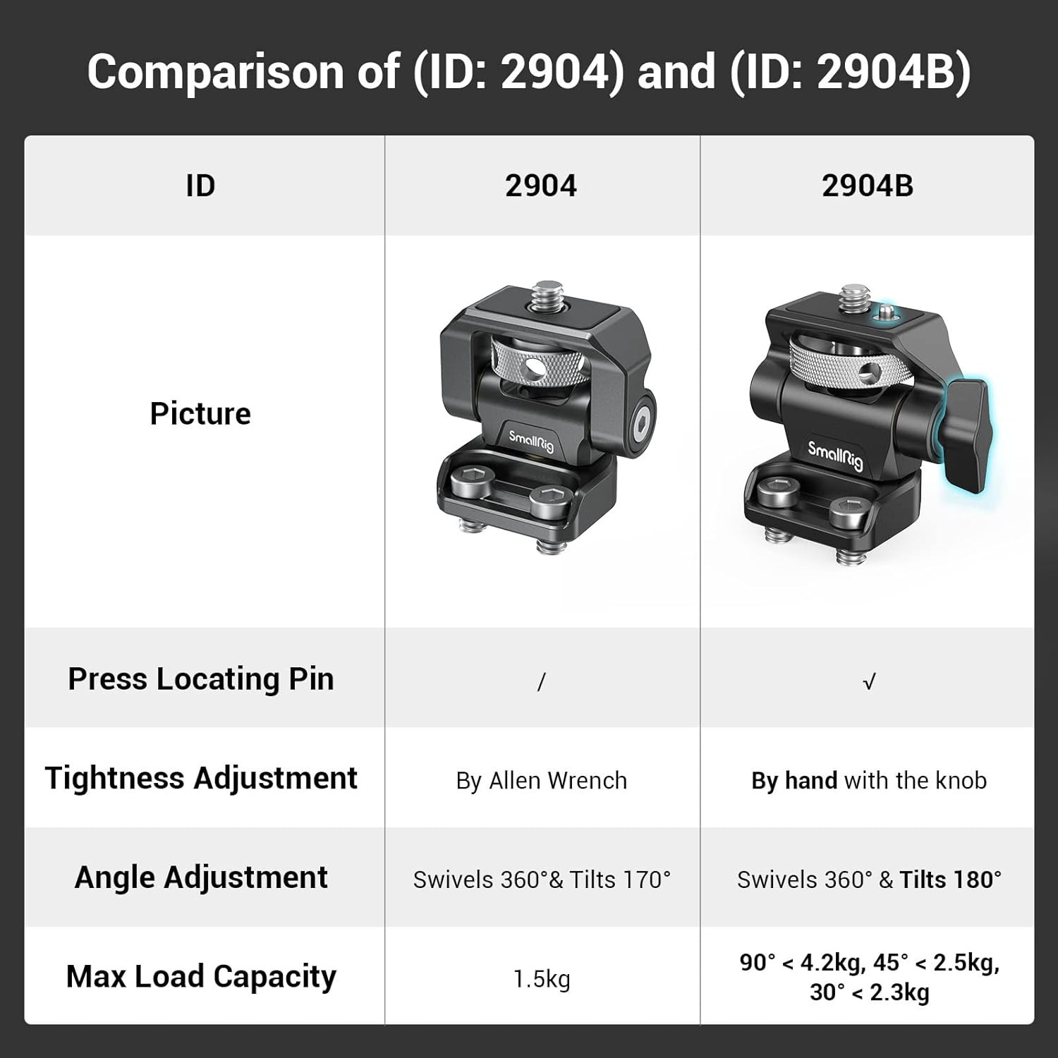 • For 5" and 7" Monitors: SMALLRIG Rotate and Tilt Monitor Mounting 2904B is designed to attach your monitor to accessories such as camera cage, handle or other mounting system via 1/4"-20 screws. It is compatible with screw threaded holes whose heart distance is not more than 18mm.