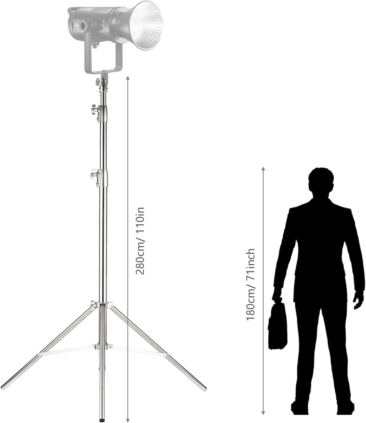 • Adjustable height: by using the rotary knobs, you can easily adjust the height of the light stand to your different usage needs and the max. usage height can be up to 280cm/110in.