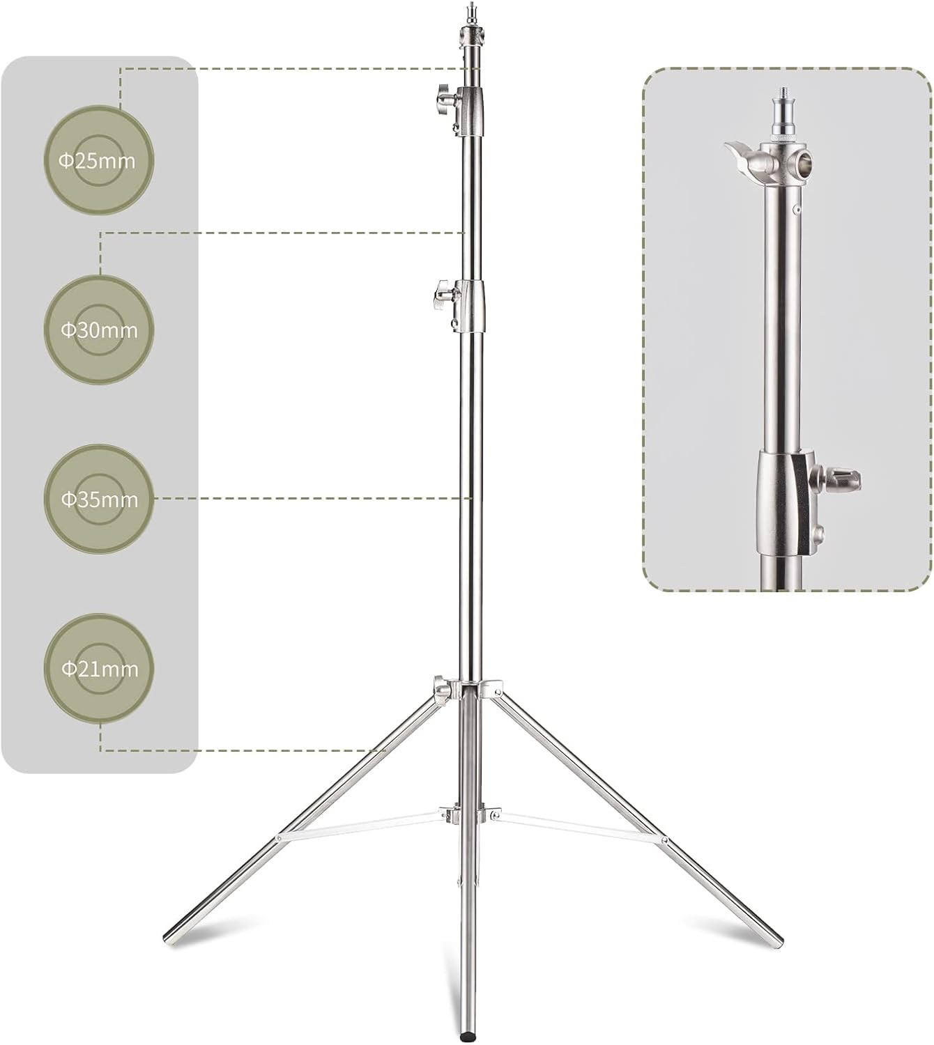 • ?【Premium Material】Made of high quality stainless steel material, this light stand is very durable and sturdy, corrosion-resistant and anti-rust, which guarantees a long service life.