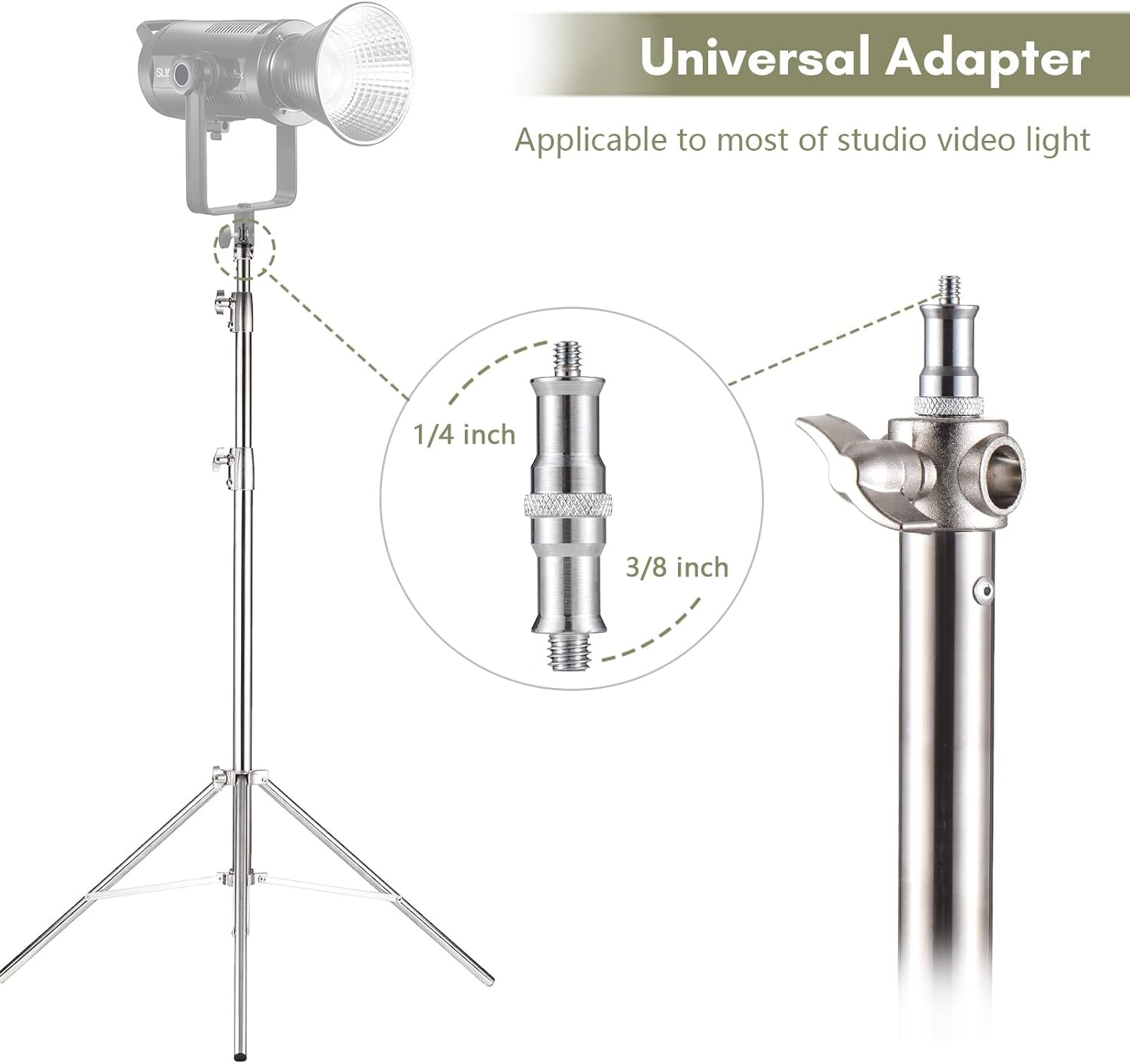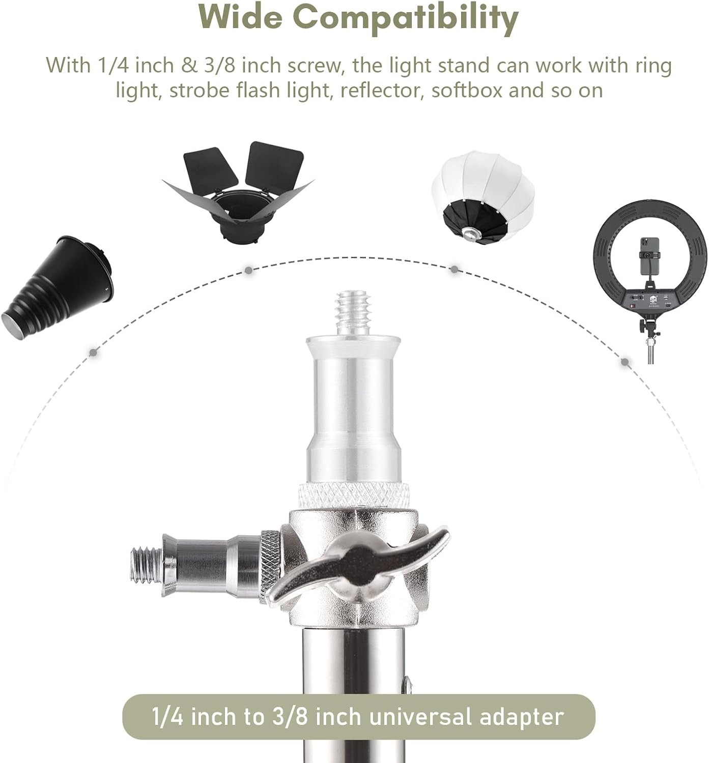 • Robust light stand: with 1/4 inch and 3/8 inch screws, the heavy-duty light stand is compatible with most photographic equipment, such as softbox, strobe / flash light and reflector. Suitable for studio and outdoor use.