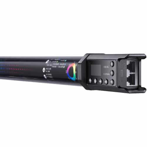 The Tube light has a wide CCT range of 2700 to 6500K to meet any ambient light challenge, match other fixtures, or just to spark creative expression, while a library of 40 Rosco and Lee filters seals the deal. Yet another plus is the light’s RGB mode with Hue, Saturation, and Intensity control giving you access to a myriad of custom colors. Yet another bonus is wireless control with optional gear at distances from 98 to 164′ via DMX, a remote control, or a smartphone app backed by 32 channels and 6 groups. The Tube light ships with a power adapter, a DC cable, and a carry bag.