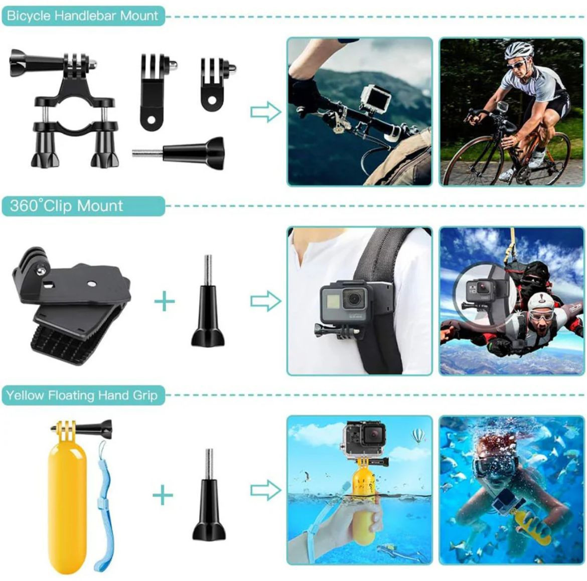 - Comprehensive Accessory Set: Includes a variety of mounts and adapters, such as a floating handle grip, surface quick-release buckles, and a handy pouch for easy storage.