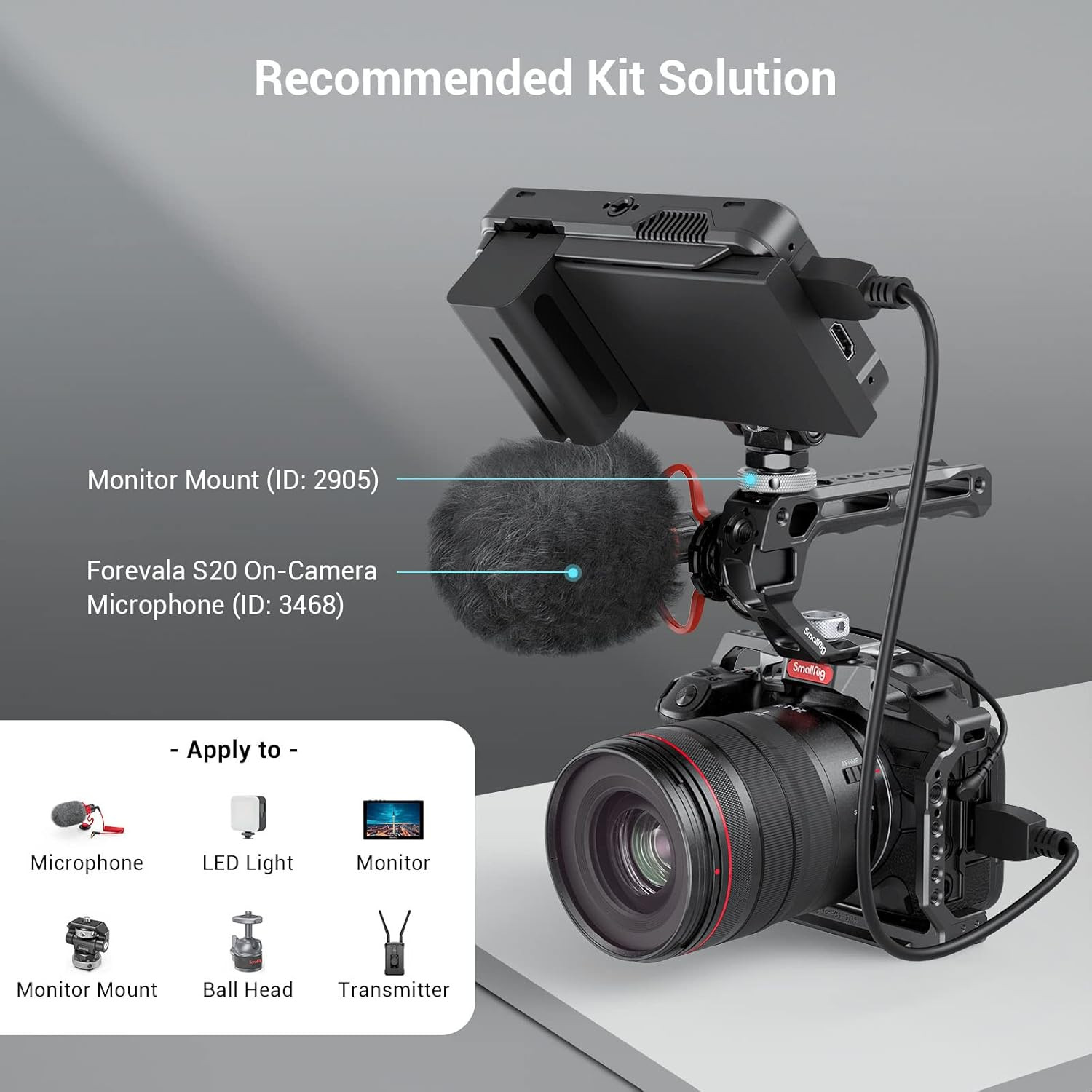 • 5 Built-in Cold Shoe Mounts: It has 3 cold shoes on the front and 2 cold shoes on the back that allow to mount a microphone, LED lamp, monitor and other accessories at the same time, such as Monitor Mount 2905B, LED Light 3286B, Microphone 3468.