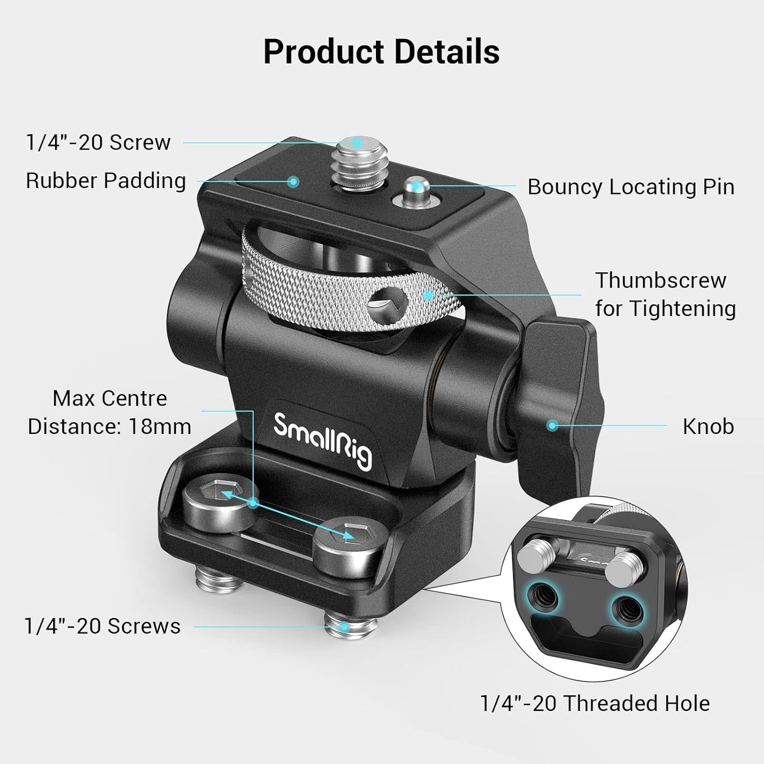 • For 5" and 7" Monitors: SMALLRIG Rotate and Tilt Monitor Mounting 2904B is designed to attach your monitor to accessories such as camera cage, handle or other mounting system via 1/4"-20 screws. It is compatible with screw threaded holes whose heart distance is not more than 18mm.